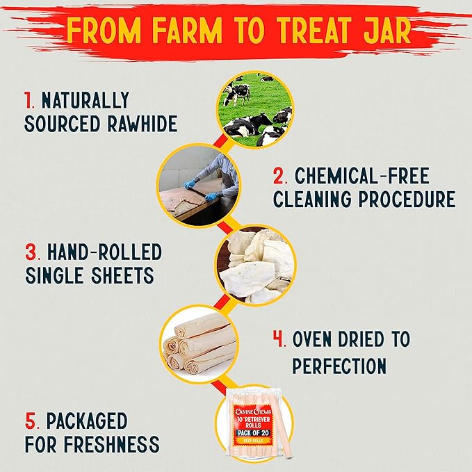 - Premium Beefhide - For 25 years our family-owned manufacturer has prided itself on continuing to source high-quality raw hide solely from North America to create our all natural rawhide rolls for dogs. Each jumbo raw hides large dogs is hand-rolled