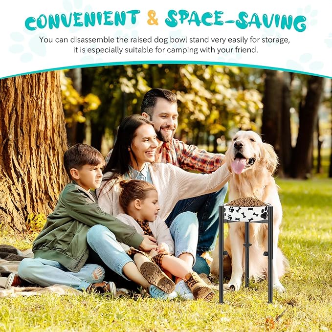 - 3 Minutes Installation: This modern raised tall dog bowl stand single is made of sturdy and durable metal with a rust-resistant coating, the simple and stable construction gives it the advantage of being quick to install and space-saving; You can disassemble the raised dog bowl stand very easily for storage, it is especially suitable for camping with your friend