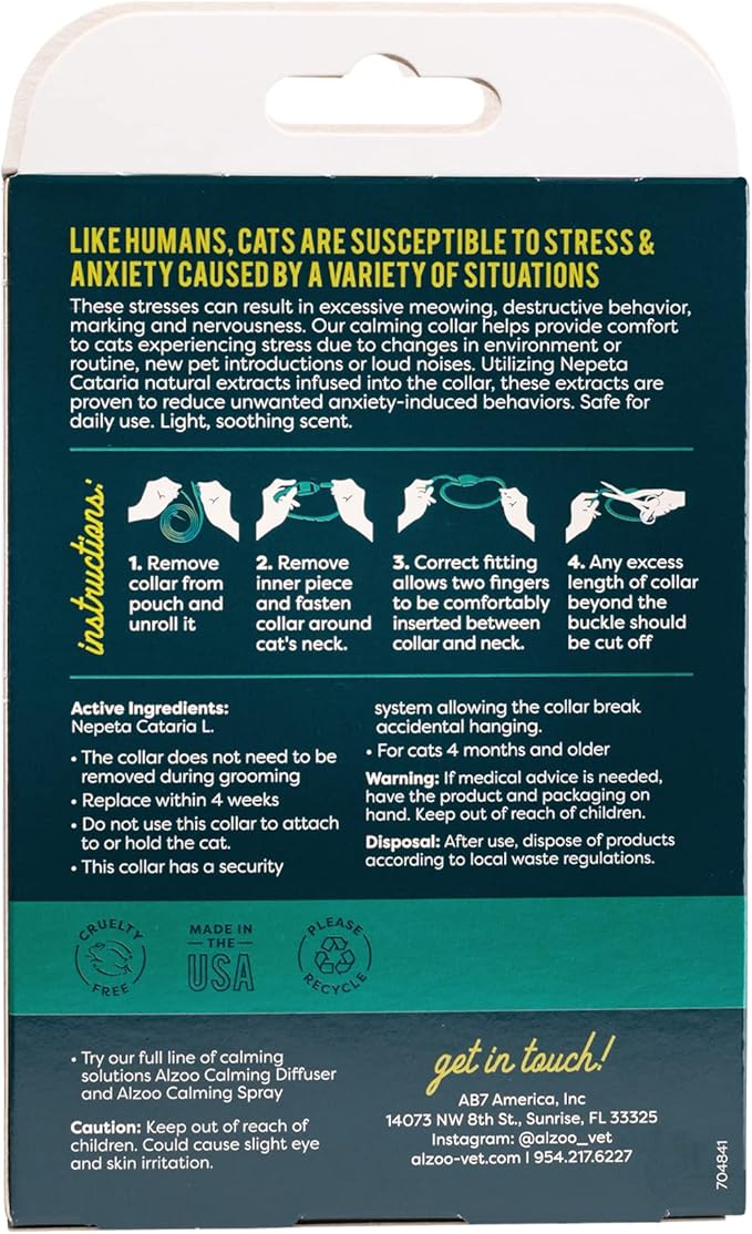 - WATERPROOF COLLAR IS EFFECTIVE UP TO 4 WEEKS - The ALZOO Cat Calming Collar maintains its effectiveness if your cat gets wet and it is long lasting and is effective up to 1 month.