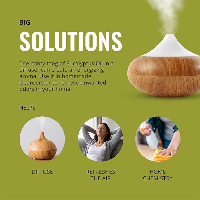 - Durable Packaging: Our UV-resistant amber bottles ensure longevity. Sourced from India and steam distilled, this eucalyptus oil for humidifiers is bottled in the USA. Create refreshing blends with frankincense essential oil organic or lemongrass essential oil for all your needs