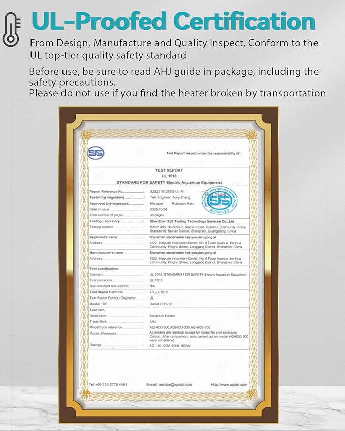 - ๐๐ก๏ธ[High Quality with Longer Life span] ๐Before the digital aquarium heater delivery, we have 100% conducted a 72-hour heating test in water to ensure the safety of the product. Using a thick quartz tube, 1.5m/4.75 ft cable(U.S. UL Certified), high temperature resistant protective case which Prevents water plants from adhering to the quartz glass wall and protects small fish not touching the quartz tube.