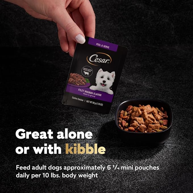- Made with Real Beef: Cesar Filet Mignon Flavor Mini-Pouches are made with real beef so your dog gets a flavor they know and love