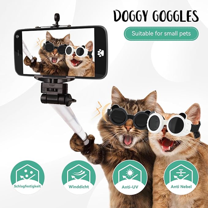 - Newest-Round Pet Goggles come with two ears decoration, not only protect dog eyes, also more cute in appearance, it can serve as fashion accessories in daily outfit or parties.