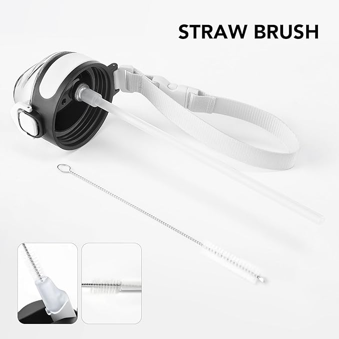 - Humanized Design: The one-hand operation button allows for easy access to water. Highly suitable for boys and girls, and all ages. The flip-top lid of the insulated bottle is used a secure lock, making it dust-free and leak-proof. The included straw brush makes maintaining your bottle's cleanliness uncomplicated and efficient.
