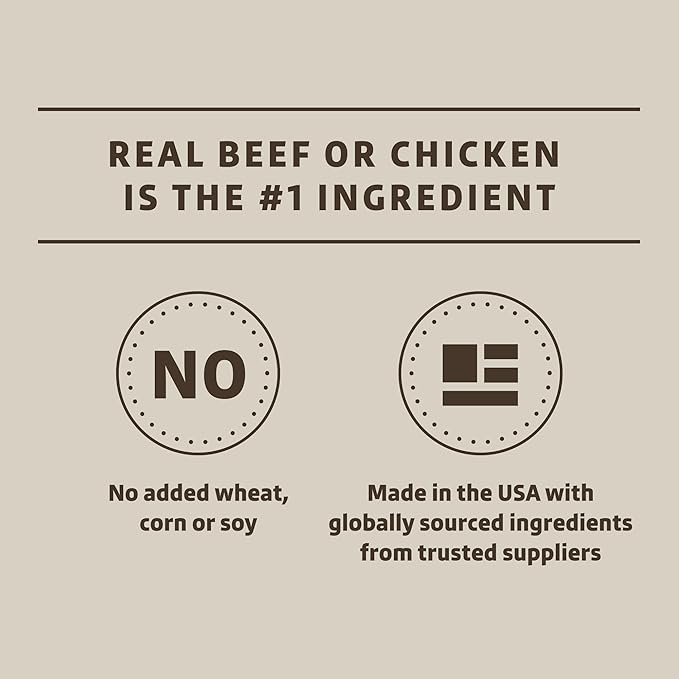 - Real beef or chicken is the #1 ingredient