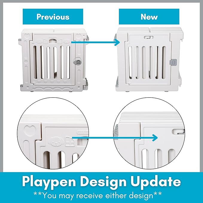 - DIMENSIONS AND MATERIALS: Standing at 25.6 inches high, the playpen is made of strong, durable plastic. The 12-panel design offers ample space for pets to play, while the neutral white color blends seamlessly with any home dΓ©cor. Ideal for small to medium pets.