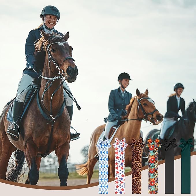 - Vibrant and Colorful Designs: our tail wraps for horses come in an array of colorful designs, giving horses a stylish appearance; Each of the 6 bags boasts a distinct design, diamonds, leopard print, stars, solid color, reflecting a vibrant and energetic vibe; The pictures genuinely express the bags' colors, adding a splash of color to any horse's tail