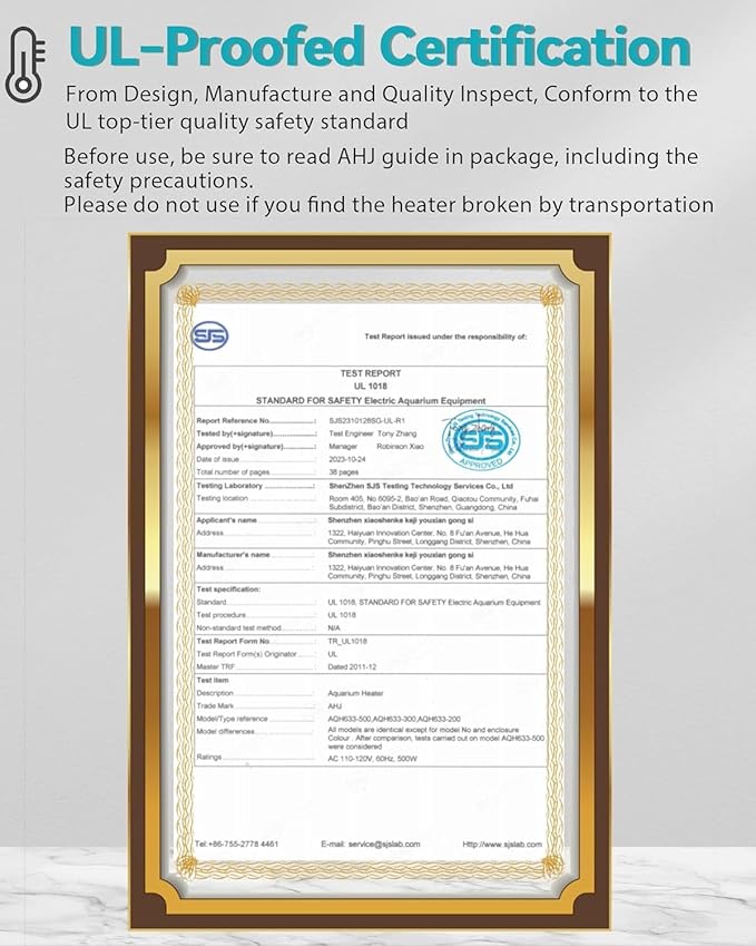 - ππ‘οΈ[High Quality with Longer life span] πBefore the digital aquarium heater delivery, we have 100% conducted a 72-hour heating test in water to ensure the safety of the product. Using a thick quartz tube, 1.5m/4.75 ft cable(U.S. UL Certified), high temperature resistant protective case which Prevents water plants from adhering to the quartz glass wall and protects small fish not touching the quartz tube