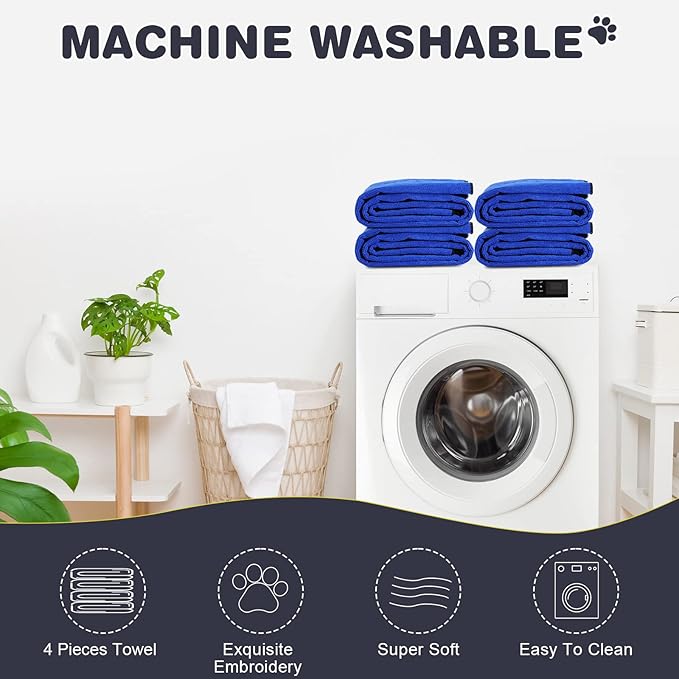 - Dog Bathing Supplies: there are 4 puppy towels in the package, blue color, which are sufficient to satisfy your pets' daily uses and replacements, and you can give the bath towel for dog to others who adopt pets as well