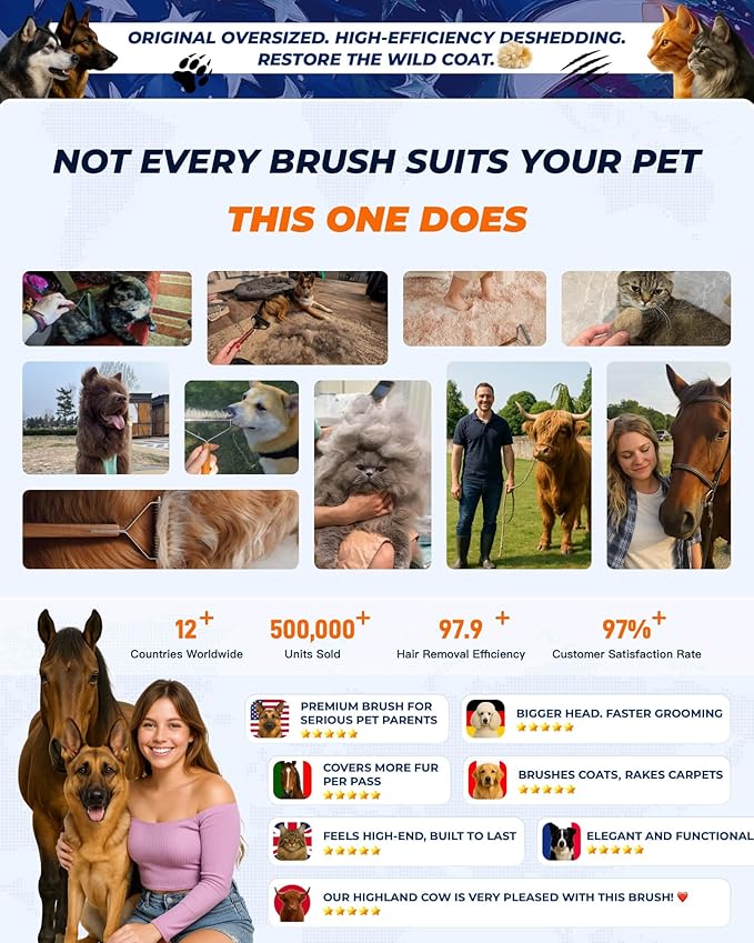 - 🪵【Ergonomic Handle for Comfort】The handle of this pet hair brush comb is made of high-grade sapele logs from lumber, providing a comfortable and secure grip. Minimize hand fatigue and groom your pet with ease, ensuring a stress-free experience for both you and your pet.