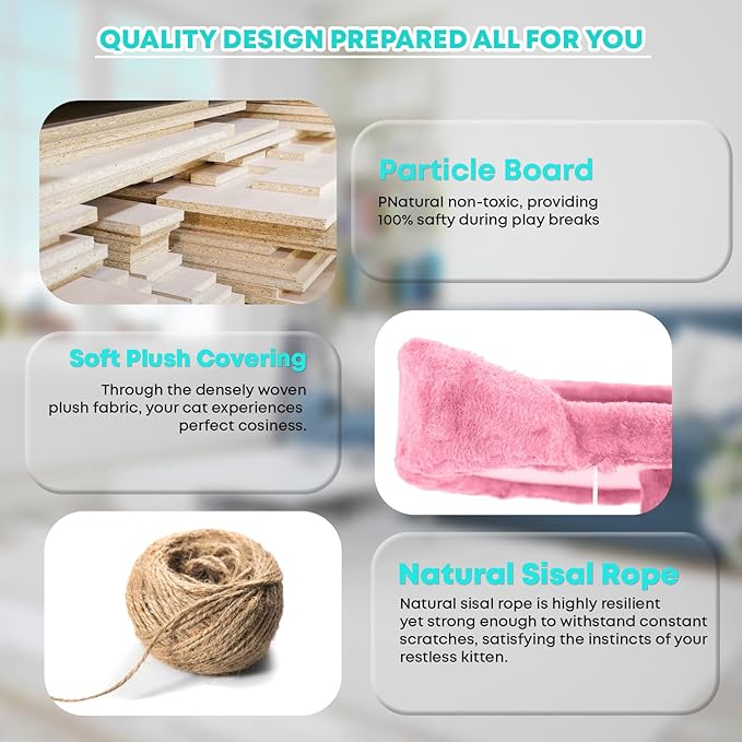 - 🐱 【Posts for Scratching Covered in Sisal 】These are scratching surfaces that are integrated into the framework. Cats love to bury their claws in sisal because it's a sturdy substance with a coarse texture. Our cat tree promotes healthy scratching habits and helps discourage cats from damaging furniture by offering dedicated spaces for them to scratch.