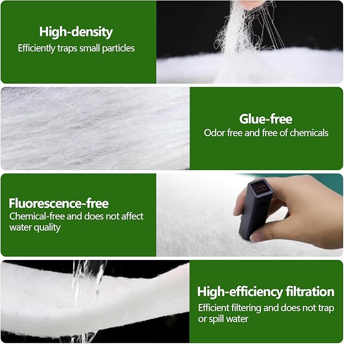 - Say bye to Messy Aquarium:This filter floss for fish tank is used in aquarium filtration system. The aquarium filter media can effectively remove impurities and waste in the fish tank, keep the water clear and transparent, and provide a clean and healthy living environment for aquarium pets. The use of aquarium filter floss can reduce changes in water quality, prolong the service life of the filter system, and keep the fish tank clean and sanitary