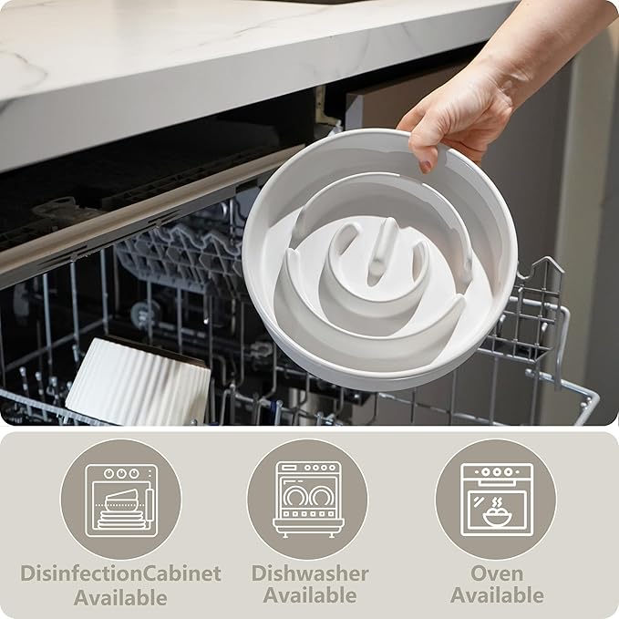 - 【Slow Eater Bowl】Change your dog's fast and excessive eating behavior — Pets that eat quickly tend to get fat and choke, which can make the dog sick. Our innovative slow feeder dog bowl is meticulously crafted to encourage your dog to eat at a slower pace, extending mealtime by 10 times.