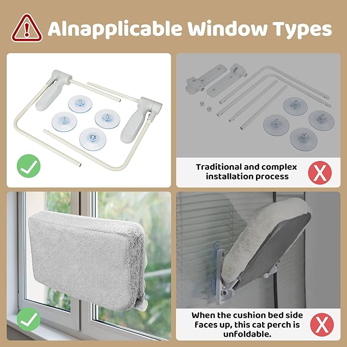 - 😺【Firm Grip Suction Cups】Our Cat Window Bed features top-of-the-line suction cups for enhanced security. They engage instantly, creating a strong hold that promises stability for your kitty's window cat door perch.