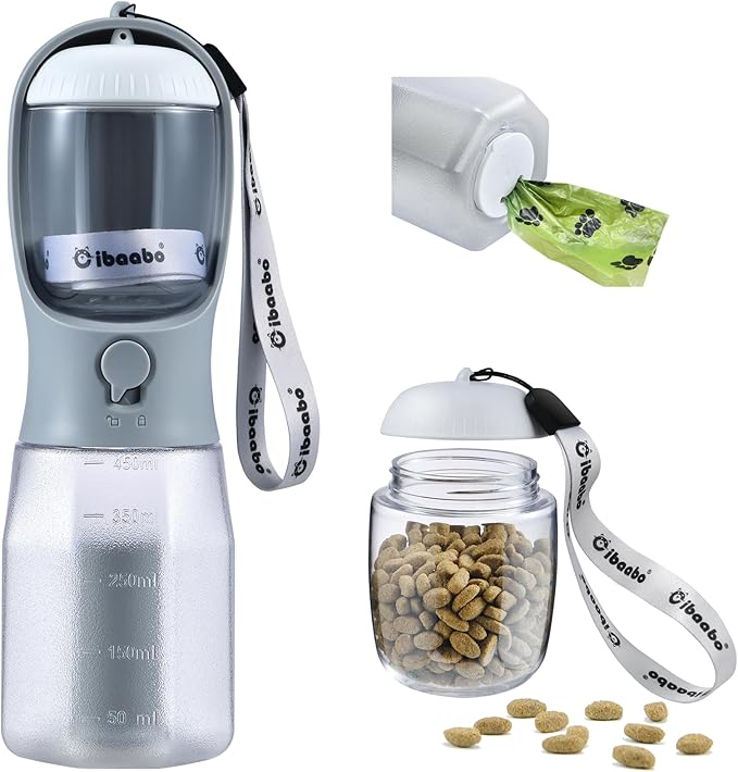 Dog Water Bottle with Food Container & Poop Bag Holder, Travel Water Bowl, Portable Pet Dispenser, Dog Stuff Accessories Items, Puppy Essentials Necessities for Yorkie Chihuahua Walking Hiking
