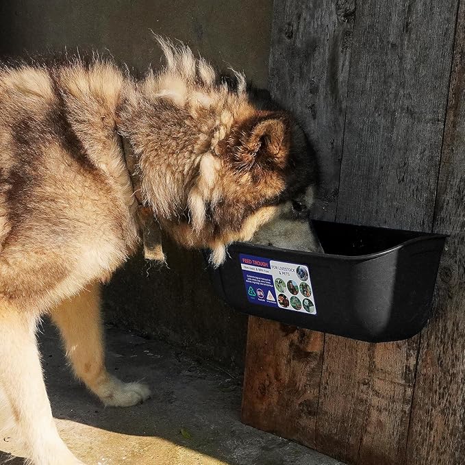 - 【Large Size Animal Feeding Trough】Compared to small animals, our trough feeder better for feeding your large goats, sheep, large dogs, cattle, pigs, deer, camelids, donkeys, mules, emus, llamas, alpacas, peacocks, chicken, duck, goose, turkey and medium or large-sized pets, poultry, livestock, etc.. Our poultry feeder is not only suitable for individual private use, but also for large-scale animal breeding. (Appearance Patent Product)