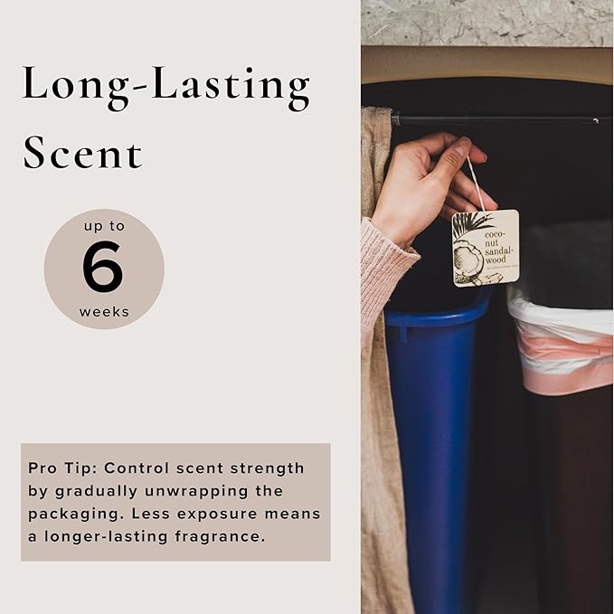 - Adjustable Fragrance Intensity: Easily control the fragrance level by cutting the plastic bag and exposing a small portion of the freshener. Increase exposure as needed for a stronger scent.