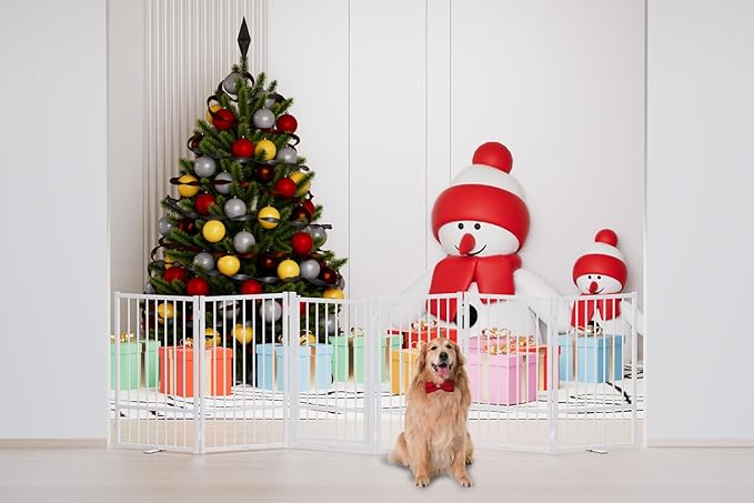 - [Versatile Sizes]: Our pet dog gate is available in 24-inch and 32-inch heights, perfect for puppies, small and medium dogs pets. Multi-choice of 2 panles, 4 panles and 6 panles, suitable for stairs, kitchens, bedroom doors, corridors and other indoor and outdoor forbidden areas.