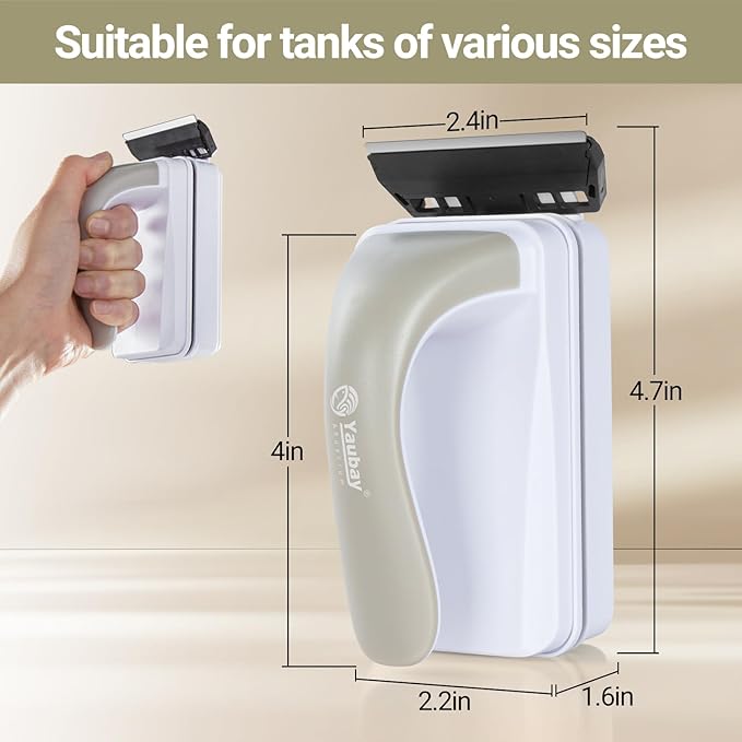- Double Sided Cleaning: YAUBAY aquarium magnet glass cleaner adopt the dual-sided design. The abrasive velcro pad can effectively scrub hard stains or mineral deposits inside the glass. And the soft pad is used to wipe dust outside. Deep cleaning without leaving blind spots,clean fish tank throughly. Make your aquarium looking pristine