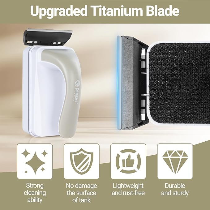 - Versatile Detachable Blade: Our aquarium glass cleaner is equipped with titanium blades, catering to various types of tanks. designed to scrape off tough algae and mineral deposits on glass/acrylic aquariums, maintaining the pristine appearance of your fish tank and enabling clearer observation of their every move