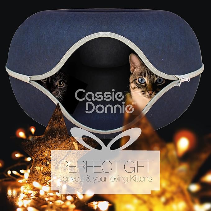 Cat Tunnel Bed for Indoor Cats, Medium Large, Donut Cave House up to 22 Lbs, Spacious for 2 Kittens (Dark Blue)