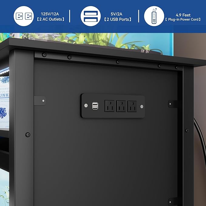 Aquarium Stand for 55-75 Gallon Fish Tanks with RGB Light Strip Black Modern Contemporary Wood
