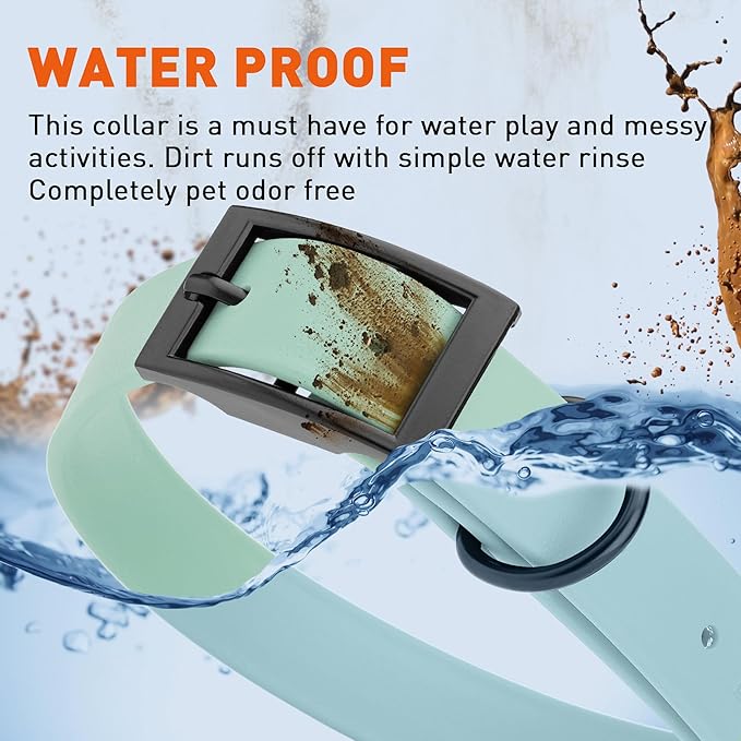 • Free Your Dog to romp in puddles and retrieve from lakes with the Dogline Biothane Waterproof Dog Collar. This water-repellent collar stays dry and odor-free, without shrinking or losing flexibility.