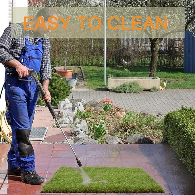 - HIGHLY PERMEABILITY: - The pet artificial grass boasts drainage holes that This allows liquid to flow straight through and ensure super easy cleaning and drying. you no longer have to worry about dealing with a muddy mess outside or inside your home.
