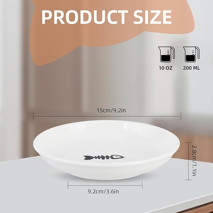 - 🐾【Flat Wide Bottom Design】The kitten food bowl is specially designed with a diameter of 15 cm and a height of 3 cm. The shallow cat bowl prevents the cat's appetite from being affected by whisker fatigue and keeps the face clean. The smooth bottom design prevents food from getting stuck somewhere on the cat food plate, making it easier for the cat to eat.