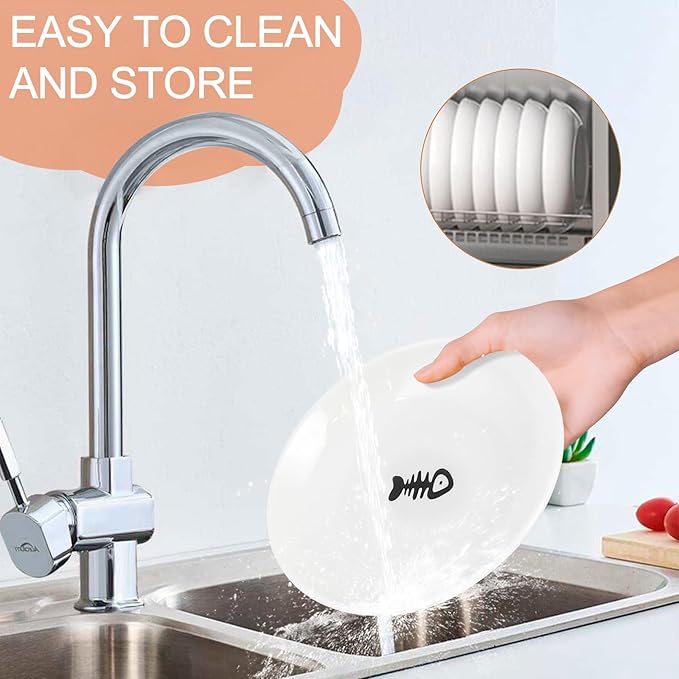- 🐾【6 Cute Cat Bowls Set to Meet Various Needs of Multi-Cat Families】The cat food bowls with fishbone patterns make the food look more delicious, easier to attract the cat's attention and increase the cat's appetite. The 6 cat bowls can easily meet the various needs of families with multiple cats and other pets: puppies, rabbits, hamsters. The kitten food bowl can also be used to hold different foods: wet and dry food, cat snacks, kitten milk, water.