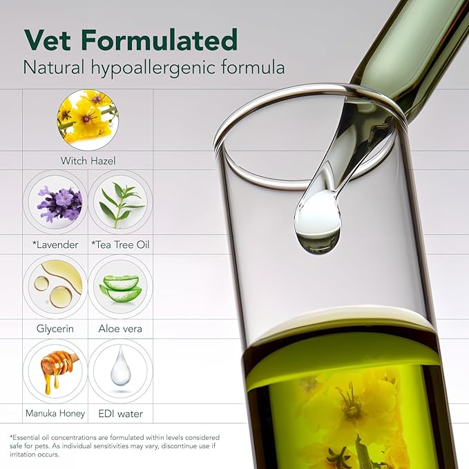 - Safe Ingredients - This dog finger ear wipes is made of: EDI puried water, witch hazel extract, aloe vera extract, tea tree essential oil, manuka honey, lavender oil, glycerin. It helps regulate skin oil secretion while moisturizing delicate skin, leaving the ear canal fresh and non-greasy, and reducing ear itching. Even repairs damaged skin barriers, enhances ear resistance, and reduces the occurrence of ear problems