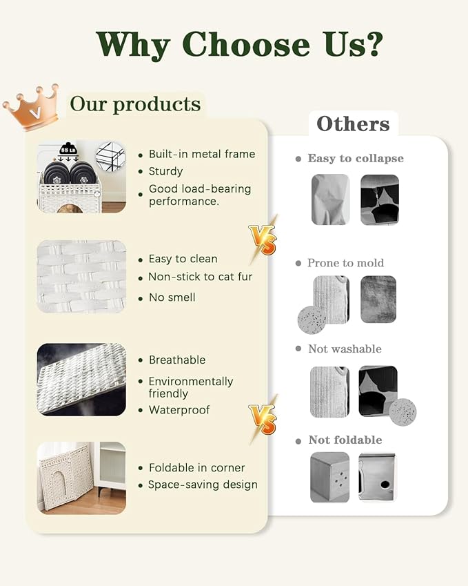 - Easy Care & Assembly: The large cat house includes a set of installation tools for quick to assemble of bed for cats. The rattan of the cat bed with cover is waterproof, indoor cat bed can be washed directly with water to facilitate daily cleaning and care