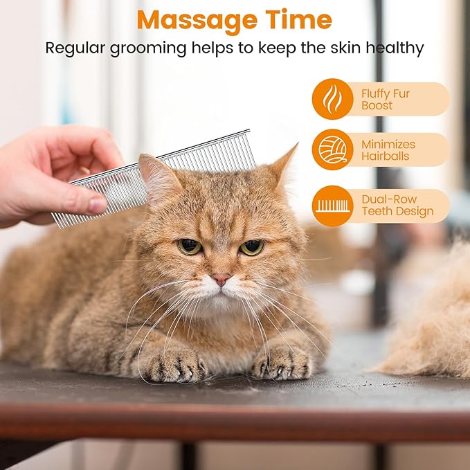 - Multi-Functional:Beyond basic of removing loose hair, mats and knots, this metal comb promotes blood circulation during use for a healthier, shinier coat. Suitable for dogs, cats, and other long - or short - haired pets, it doubles as a massaging pet comb to enhance overall wellness