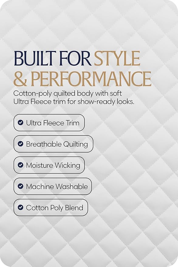 - ✅ Durable and Comfortable Design – The quilted poly cotton body ensures long-lasting durability and breathability, providing your horse with the ultimate comfort for hours of riding, whether you’re in the show ring or out for training.