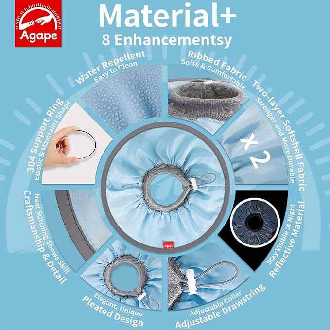 - 【Enhanced Protection & Freedom】The Agape Cat Recovery Collar features a 304 stainless steel support ring and a larger diameter, addressing the issue of insufficient protection found in some collars that are too soft or too small. This design ensures your cat can eat, drink, and play freely, without blocking their vision, allowing them to maintain their usual activities and comfort during recovery (Please note: While using the collar, it may affect your cat's ability to enter a closed litter box or cat door)