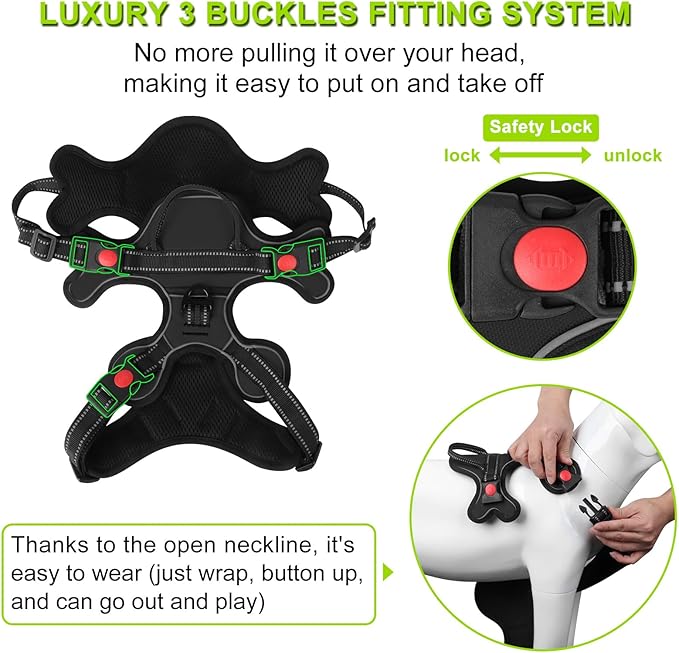 - 【 No Pull & Choke-Free Design 】Designed with your dog's comfort in mind, our No Pull Dog Harness is structured to distribute pressure evenly throughout your dog's body, preventing choking and discomfort during walks. This feature offers a more humane and safe way for you to control your dog.
