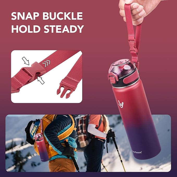- Easy Travel: With its generous 24 oz capacity, the water bottle with snap buckle is perfect for all your outdoor adventures, such as hiking, camping, and sporting events. Stay hydrated and enjoy your journey hassle-free with this versatile companion.