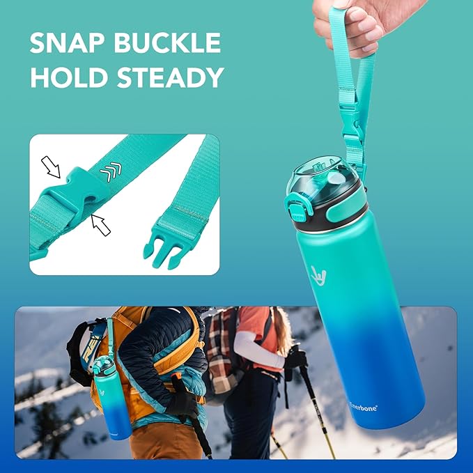 - Easy Travel: With its generous 24 oz capacity, the water bottle with snap buckle is perfect for all your outdoor adventures, such as hiking, camping, and sporting events. Stay hydrated and enjoy your journey hassle-free with this versatile companion.