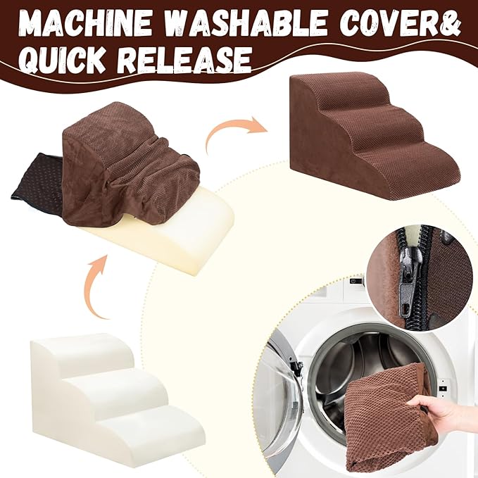 - Double Sided Anti Slip: The dog steps cover is made of corduroy with greater friction than other fabrics, which provides extra grip while in use, the bottom features nonslip rubber dots, preventing pets from sliding while climbing, providing pets with double safety protection