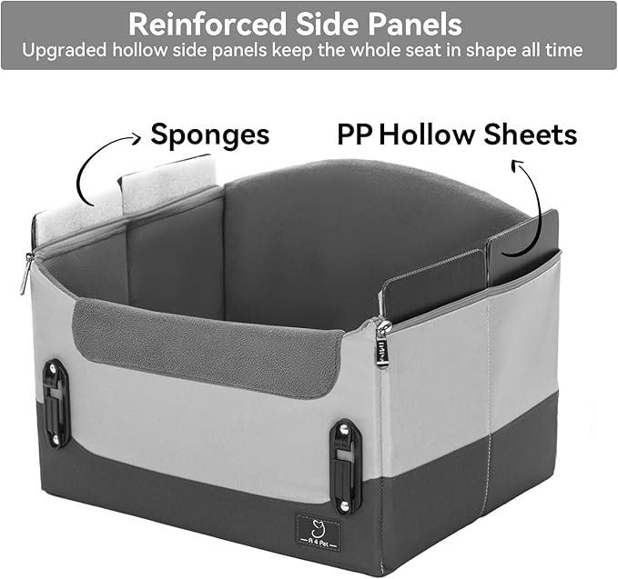 - Durable & Comfortable Dog Car Seat: Made from heavy-duty Oxford fabric with double-stitched seams for extra strength, this pet car seat combines durability with comfort. The soft fleece lining, plush pillow, and sponge-supported base provide optimal support for long trips