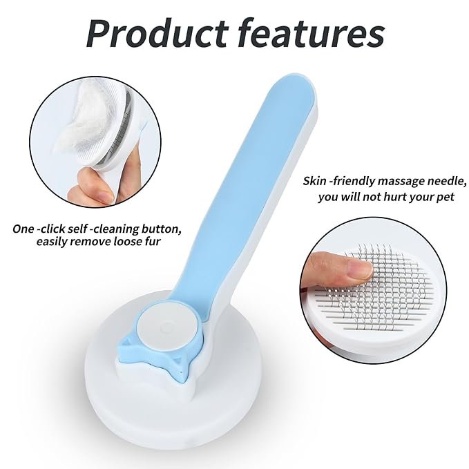 - 2. Cat Brush For Shedding: 1. One-click Cleaning Button, and the fur collected on the brush is easy to remove. 2. The skin -friendly massage needle will not tie your pet