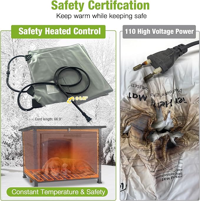 - Safe Heating System: : UL tested heating pad with automatic heated control, temperature from 89 to 116Β°F. Build in high-temperature protection device preventing overheating or chilling. 6.5 ft chew-resistant cord adds an extra layer of safety