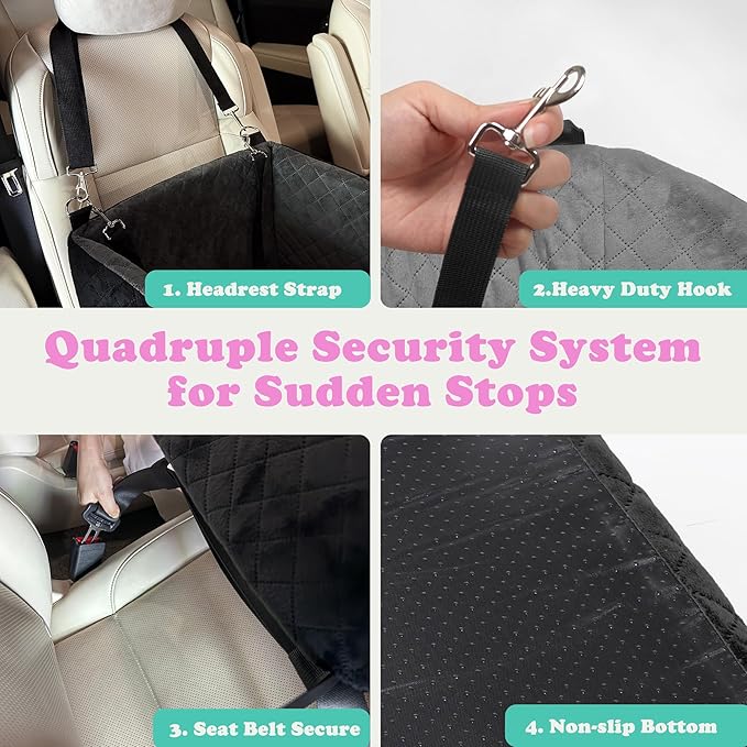 - π MΓ‘xima Seguridad: El asiento de coche para perros iPetba cuenta con un sistema de triple seguridad para una protecciΓ³n total; base antideslizante para garantizar estabilidad; correa para el reposacabezas para mayor soporte; cinturΓ³n de seguridad que asegura el asiento firmemente en su lugar durante el viaje; el asiento permanece estable, incluso durante paradas repentinas, asegurando la seguridad de tu mascota