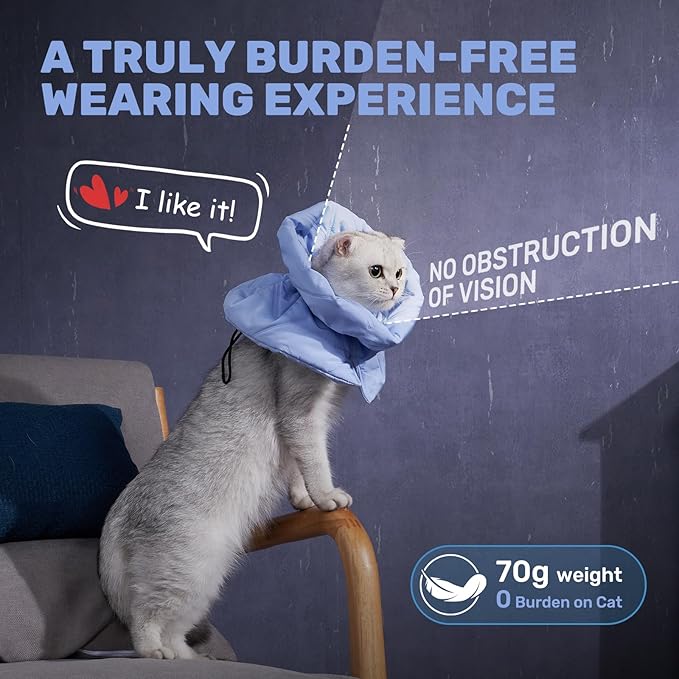 Adjustable Cat Recovery Cone Collar, Lightweight Soft Cat E-Collar Alternative After Spay, Waterproof Comfy Collars to Stop Licking Wound After Surgery, Protective Cone for Kittens/Puppies