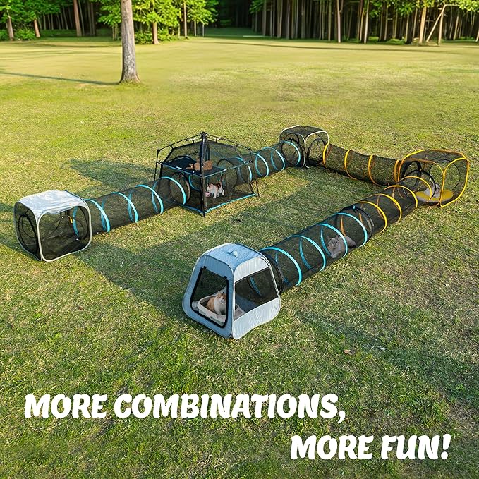 - TWO DOORS DESIGN:Two doors design can assemble more shape.They can assemble with our tunnel, cube or pet mansion to create a giant pet castle,more fun for your pets. Itent products are compatible, free combination.