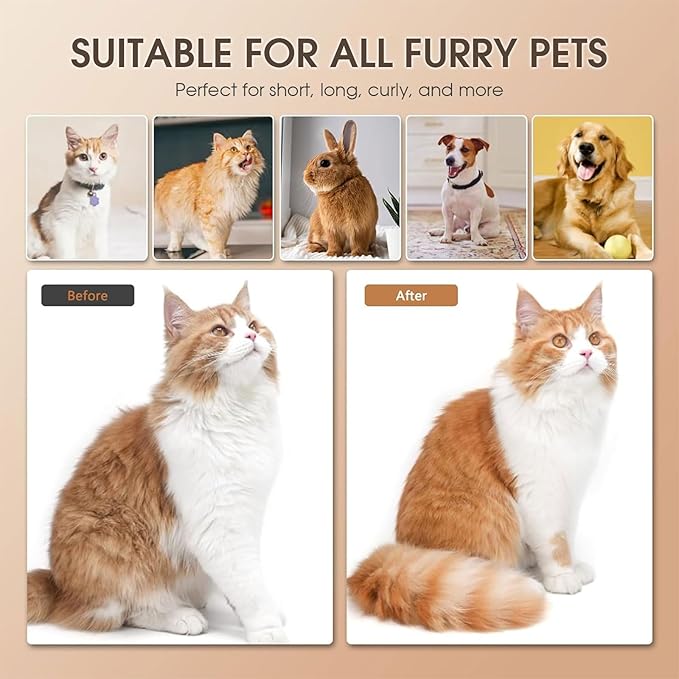 - 😽CLEAN AND COZY HOME: Regular brushing with this grooming tool removes excess dead hair, leaving your home cleaner and hair-free. Enjoy the tidiness, and let your pet revel in the bonding time. It's a win-win for a cleaner, cozier living space.