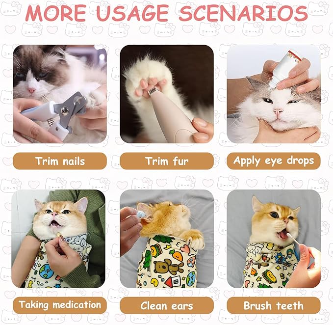- 【Multi-Functional & Versatile】 Perfect for nail clipping, brushing, or administering medicine, this wrap keeps your cat calm and comfortable, making grooming easier than ever