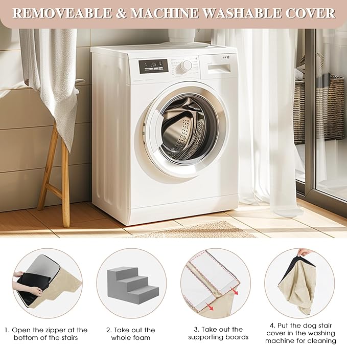 - 【ENHANCED STABILITY】GGIB dog stairs improve a new design with supporting boards, added between the foam stairs and the removable cover. They are fixed inside the cover. Pets can step on more stable and supportive stairs surface, preventing them from slipping when moving quickly.