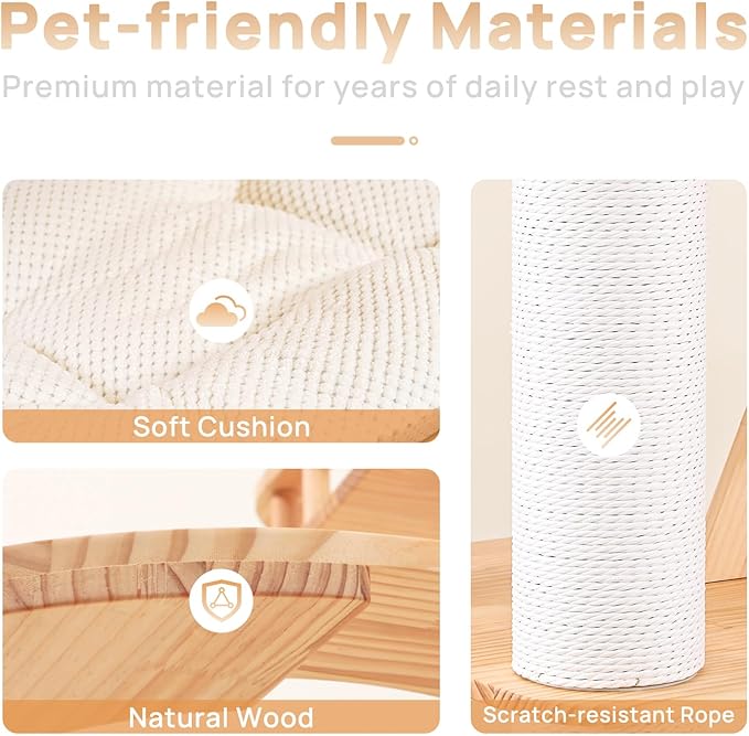 - 【Pet-friendly Material】Our cat tower crafted from superior 100% pine wood that combines luxury with stability. The scratching posts are fully wrapped in durable kraft paper rope, offering tactile pleasure and durability for your kitten. This cat furniture is designed to offer a safe, sturdy and entertaining home for your kittens.