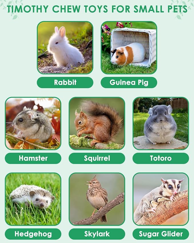 - PROMOTING PET HEALTH: Specifically designed for rabbits and similar small pets, these chews help remove food debris and plaque by encouraging natural chewing behaviors. Regular use can prevent oral diseases and promote overall dental health, reducing boredom and destructive behavior